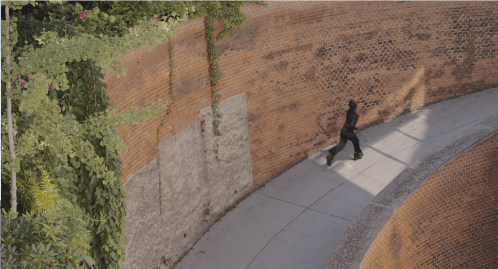 Fleshbacks (2021) is a three-part annotation to The Letter (2019). The film’s protagonists are filmed in various places in an urban setting. They are not the same performers as in The Letter, but they show a certain connection to them through the props they hold (a magnifying glass, museum-restorer tools) and the black coveralls they wear. As the work progresses, something starts shifting. They begin moving around the city— climbing stairs, running uphill and downhill, scaling ladders; they are all following an affect, what some might call a calling, leading them into a zone where the lines between Vienna and Accra, between the then and the now, as well as the here and there, become blurry and ultimately obsolete. (text: Belinda Kazeem-Kamiński)